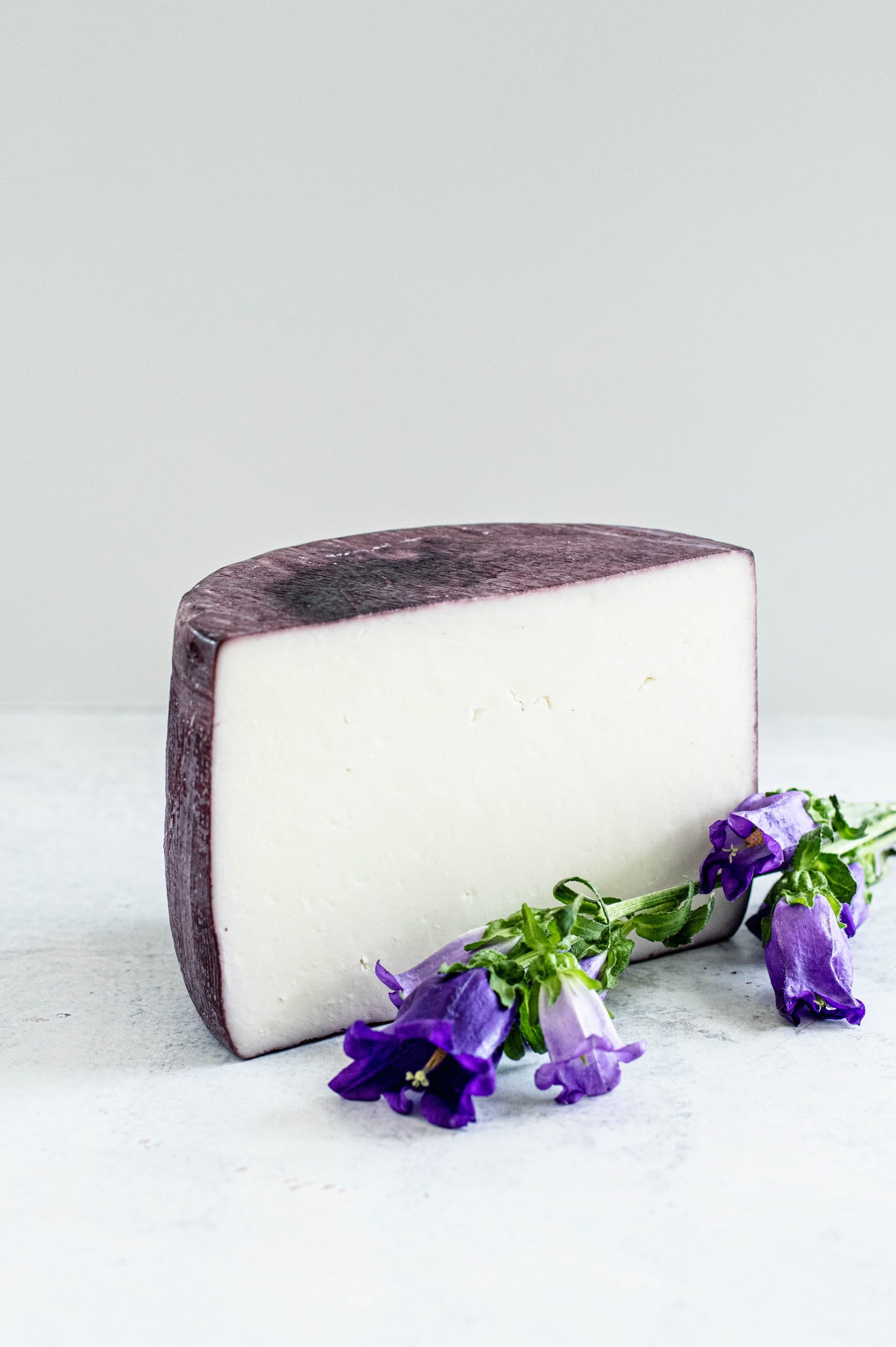 Invented by accident… A loose wheel of cheese ended up falling in to a barrel of red wine at a lively party. Discovered after the fact, the cheese ended up being delicious with its new addition. Now aged for about 72 hours in Doble Pasta Spanish red wine, the rind adds fruity and tannic flavors to the cheese. The paste remains bright white, is mildly fruity with minimal acidity. It has a lovely soft-yet-firm texture. Pairs well with medium-bodied, fruity reds.